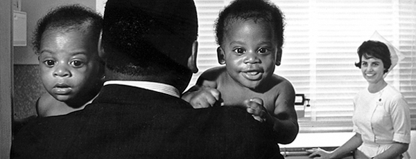 American photographer and San Francisco native Ansel Adams (1902-1984) visited UCSF during his long career, capturing this moment at UCSF Medical Center during the 1960s.
