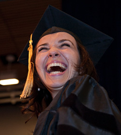 Graduating medical student Heather Bennett smiles after being selected by her classmates to receive the prestigious Gold-Headed Cane Award for representing the qualities of a true physician.