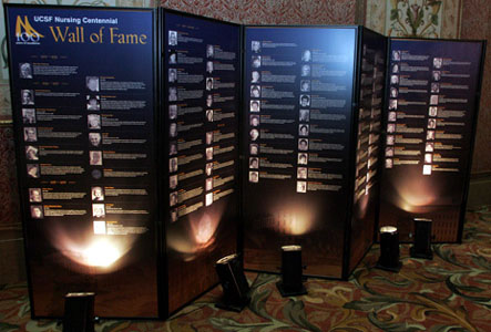 Founded as a nursing hospital and nurse training program in the wake of the 1906 San Francisco earthquake, the UCSF School of Nursing has graduated more than 10,000 nurses, preparing them to serve their communities and world as caregivers, educators and thought-leaders. "We live in a city that came out of the 1906 earthquake better, stronger and an example for others," Mayor Newsom said via a video clip, calling the school "as good as it gets" and San Francisco's finest. "You are part of that incredible renewal and rebirth, part of the values that make San Francisco a special place." Today, the school's legacy of dedication and excellence continues, as it graduates its first class of nursing doctoral students through the Betty Irene Moore Accelerated Doctoral Program. That program, which accelerates the ongoing UCSF PhD program in nursing, is among the school's many collaborative efforts to increase the ranks of nurses throughout California and the nation as a whole. These students will go on to educate the nurses of tomorrow through academic positions throughout the Bay Area.UCSF Nursing Centennial Wall of Fame.
