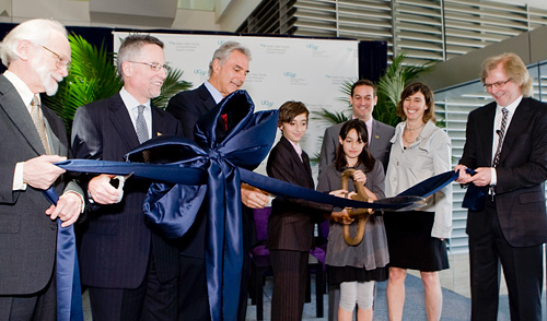 The Dillers’ daughter, Jackie Safier, said the family is “very excited about the building and the spirit of collaboration in which it was designed.” She joined her husband, Dan, and their children, Josh and Lauren, on stage for the ribbon cutting ceremony.