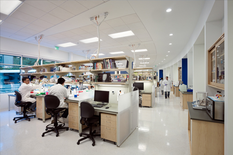 The stem cell research building provides a state-of-the-art home for some 125 labs with scientists exploring the earliest stages of animal and human development. The goal of these studies is to understand how disorders and diseases, such as diabetes, multiple sclerosis and cancer, develop and how they could be treated with regenerative medicine.