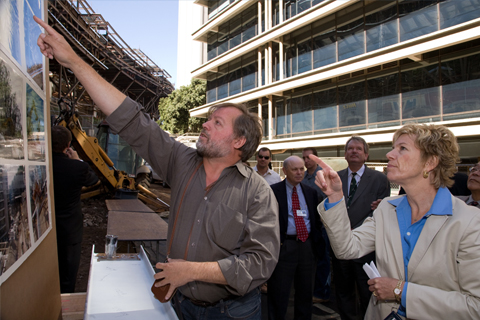“I think it’s fair to say that the end product is a feat of human ingenuity and a testament to the architectural genius of Rafael Viñoly and the leadership of UCSF's architectural and construction teams led by Michael Bade, Michael Toporkoff and George Hastings, with SmithGroup and DPR Construction,” said Desmond-Hellmann in her welcoming remarks.