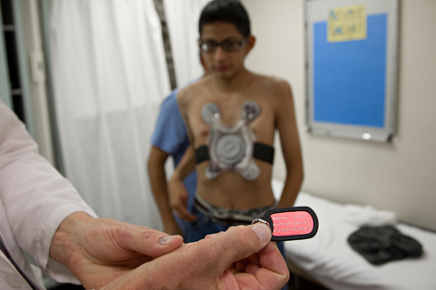 Justin returns to UCSF from his home in Stockton on a monthly basis to meet with doctors and have his brace adjusted by Darrell Christensen, CO, an orthotist in the UCSF Department of Orthotics and Prosthetics, who has worked with him since his surgery. “For the first time we’re seeing the shape of his chest start to change,” said Hirose. “It’s definitely flatter and wider. Justin is diligent about wearing his brace. Kids who participate in clinical trials are usually motivated.”