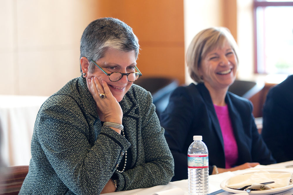 Over lunch, Napolitano chatted with a group of students, asking them what brought them to UCSF and what factors may have kept them from coming here.