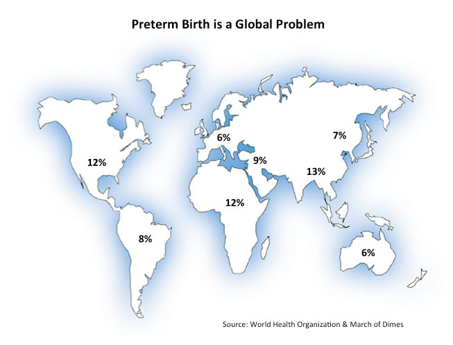 Globally, about 15 million babies are born prematurely, according to the World Health Organization, leading to death or lifetime disabilities. It is the leading cause of infant mortality worldwide, amounting to more than one million deaths annually. Preterm birth also poses an enormous medical cost to society, exceeding $26 billion annually in the United States alone, according to estimates from the Institute of Medicine.