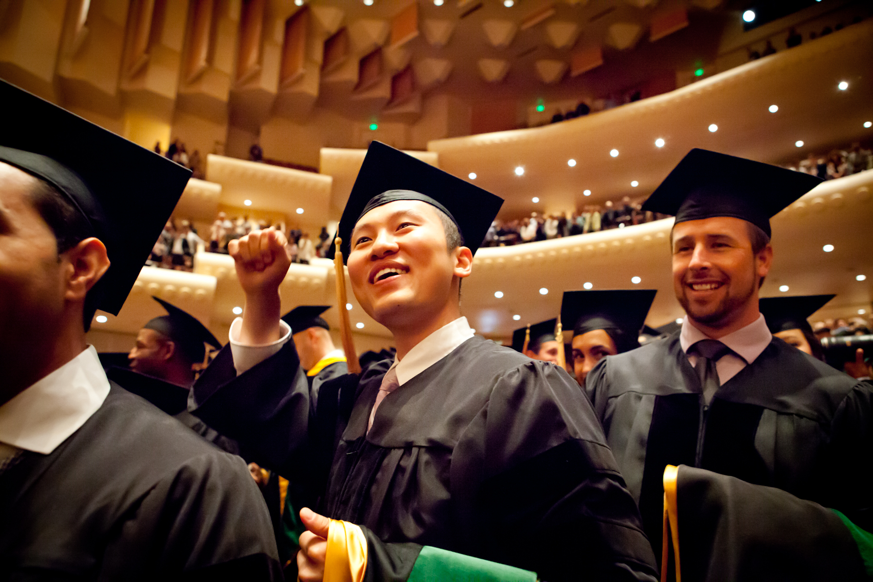 A soon-to-be School of Medicine graduate cheers as the Class of 2013 prepares to take the stage last May. Photo by Elisabeth Fall/fallfoto.com