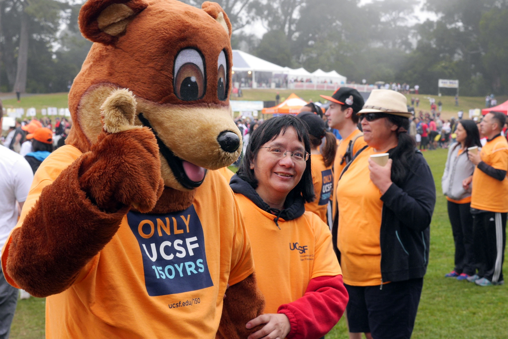 UCSF’s contingent of more than 200 walkers – wearing bright orange T-shirts commemorating UCSF’s 150-year anniversary – stood out among 20,000 people who convened in Sharon Meadow on a typical foggy summer day.