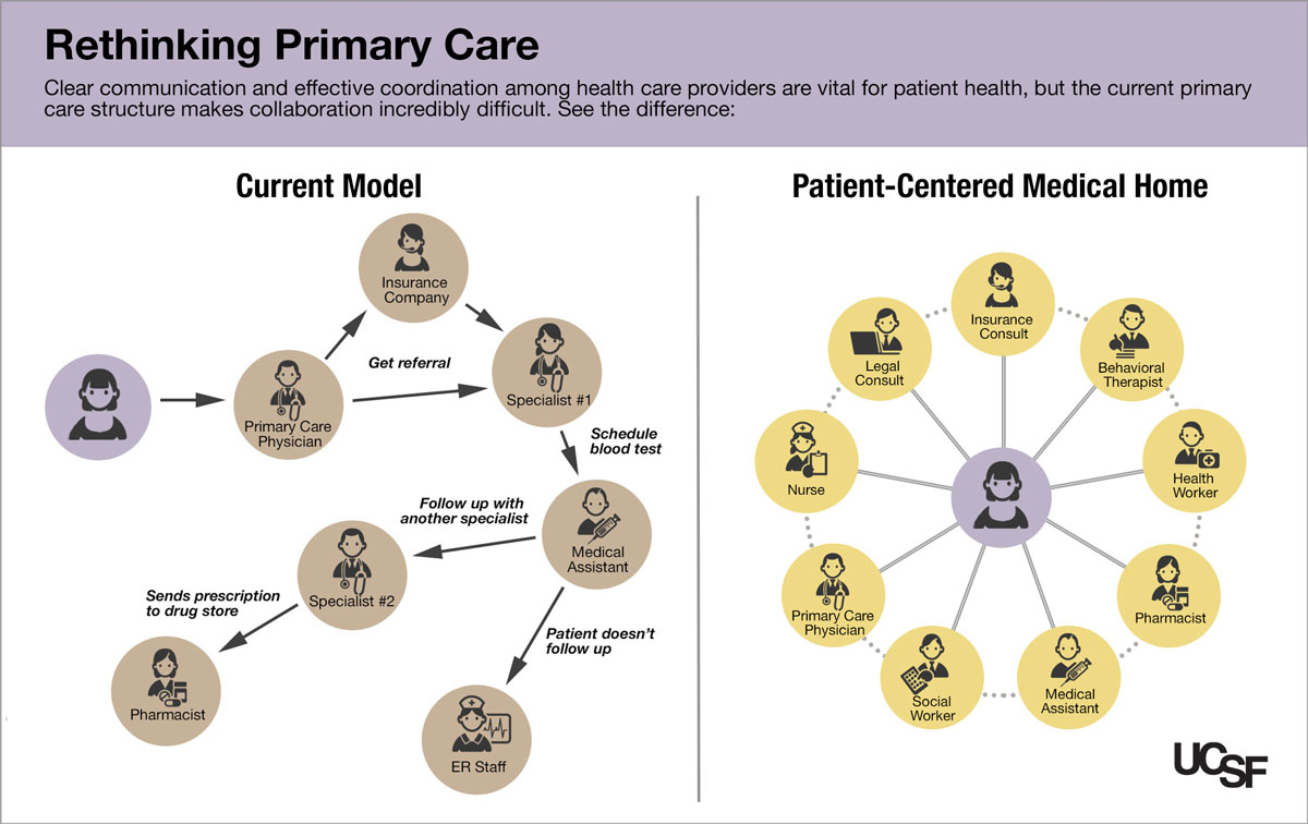 Increasingly, studies suggest that a more team-based approach to care could be a big part of the solution. UC San Francisco research has been key in showing the effectiveness and cost-efficiency of the “patient-centered medical home,” and in driving implementation of this model in multiple centers at San Francisco General Hospital.