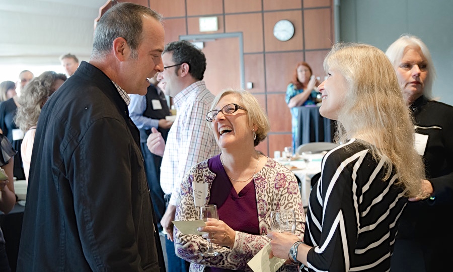 Marge O’Halloran, MBA, MPH, director of Research Management Services, introduced Plotts. After his welcome address there was an icebreaker activity, which evolved into the group having animated and lively discussions. A buffet table was laden with delicious treats that added to the festive atmosphere.