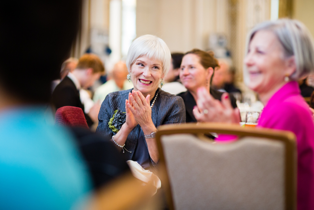 UCSF Chancellor Sam Hawgood, MBBS, provided a campus update at the Chancellor's 150th Anniversary Breakfast for more than 500 alumni at the Palace Hotel on May 30. The breakfast also introduced Harvey Brody, DDS '63, who has been appointed to serve a two-year term as alumni regent-designate to the UC Board of Regents, effective July 1. The event featured a roundtable discussion moderated by Dean Emerita Mary Anne Koda-Kimble, PharmD '69, with UCSF Nobel laureates J. Michael Bishop, MD, and Elizabeth Blackburn, PhD, who were joined by Lloyd Hollingsworth (Holly) Smith, Jr., former chair of the Department of Medicine and associate dean emeritus of the UCSF School of Medicine.
