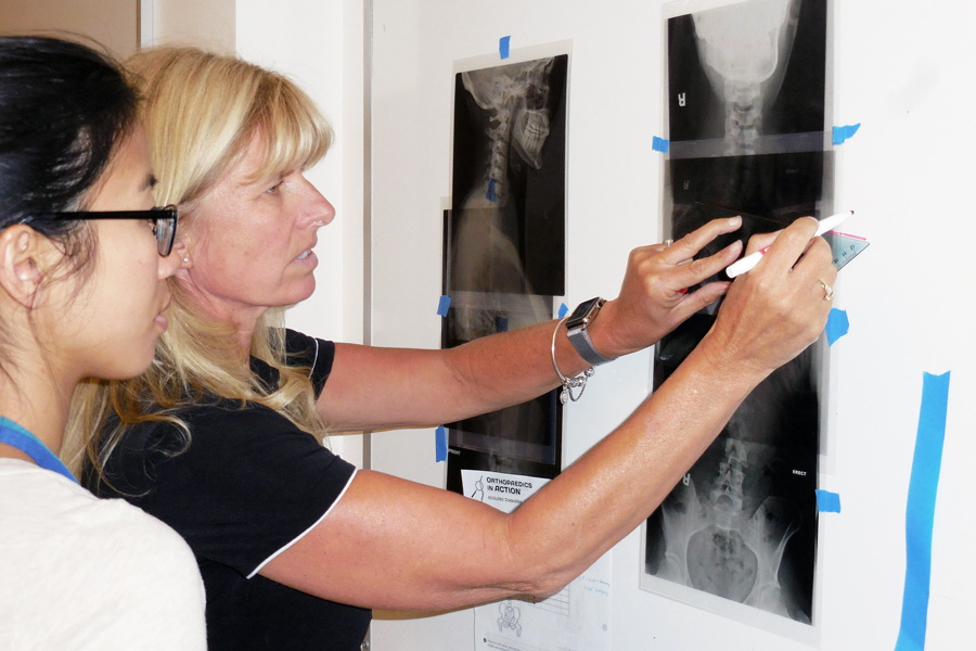 This lesson is a personal one for Buckley, who is considering surgery for her own scoliosis. In fact, she might get some advice from the students, as her own X-rays are part of the lesson.