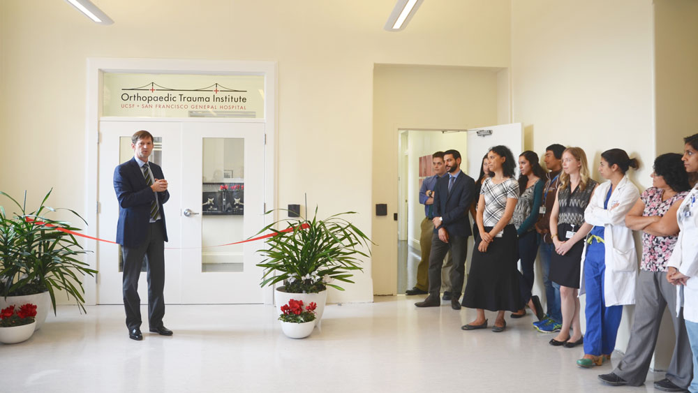 At the Oct. 15 ceremony, Theodore Miclau, MD, vice chairman of orthopaedic surgery at UC San Francisco, explained that the first organized Orthotics and Prosthetics center at SFGH began in the basement of the hospital 22 years ago, where it remained until this October.