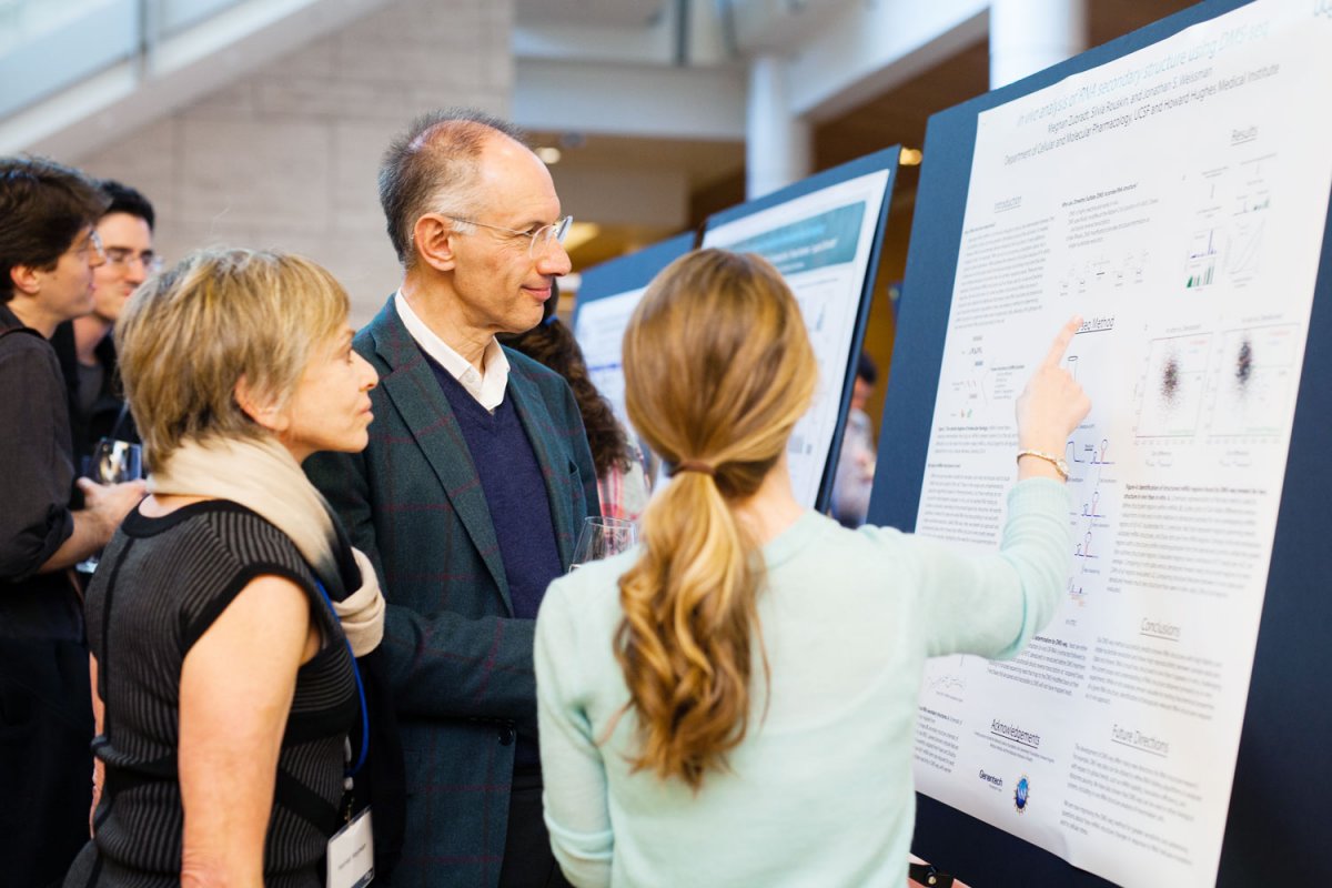 SUPPORT FOR BASIC SCIENCE: After establishing the largest endowed PhD program in UC history, Sir Michael Moritz and Harriet Heyman laid down a challenge: If 1,000 donors also contributed, they’d provide up to $11 million in additional funds. UCSF’s generous community hit that goal well ahead of schedule in October, a tremendous show of support for the value of basic science discovery. Photo by Elena Graham