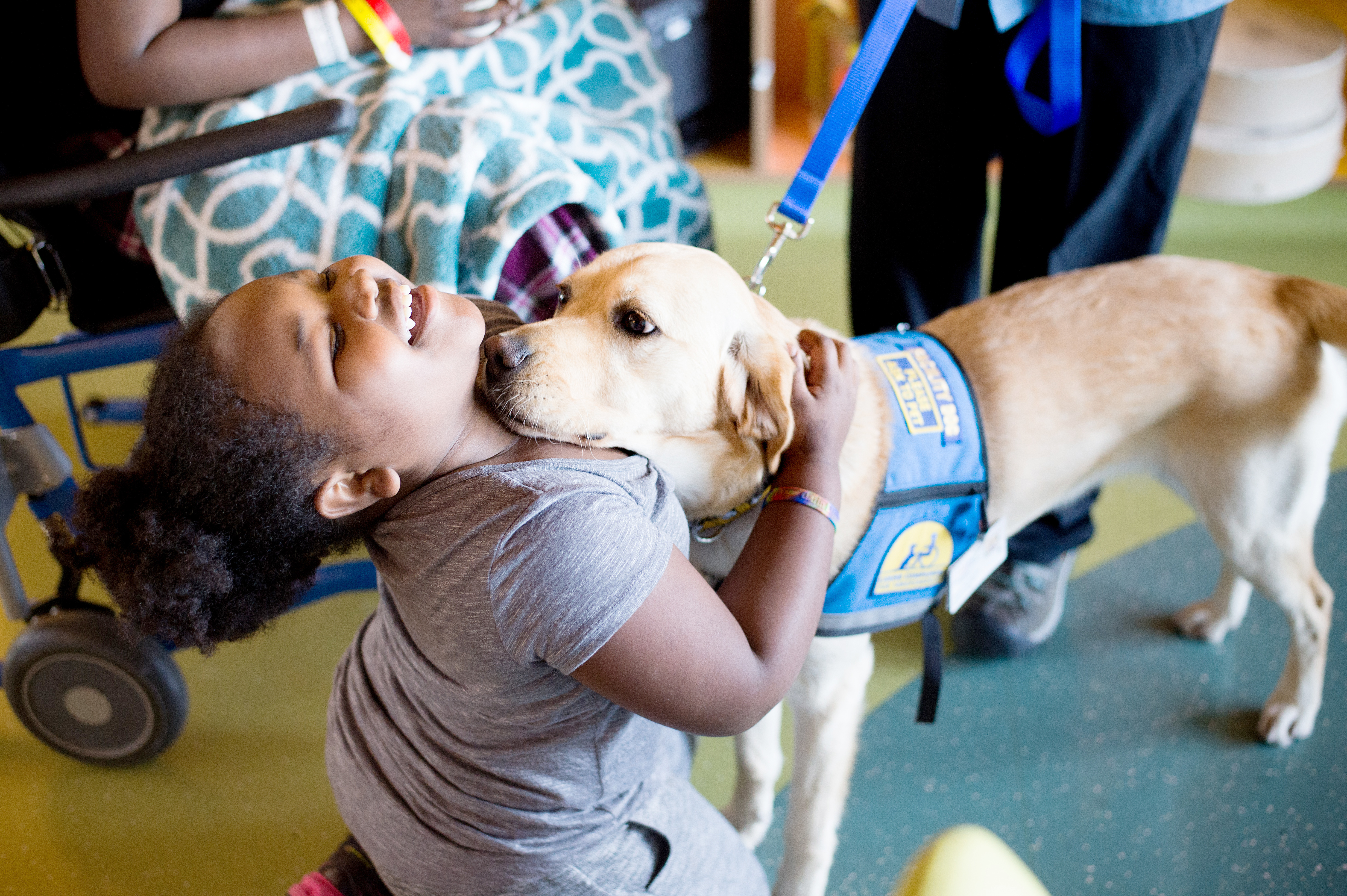 Kimono has undergone a rigorous two-year training program at Canine Companions for Independence, which provided her free of charge. She knows 40 commands and provides gentle empathy and support for children undergoing painful procedures.