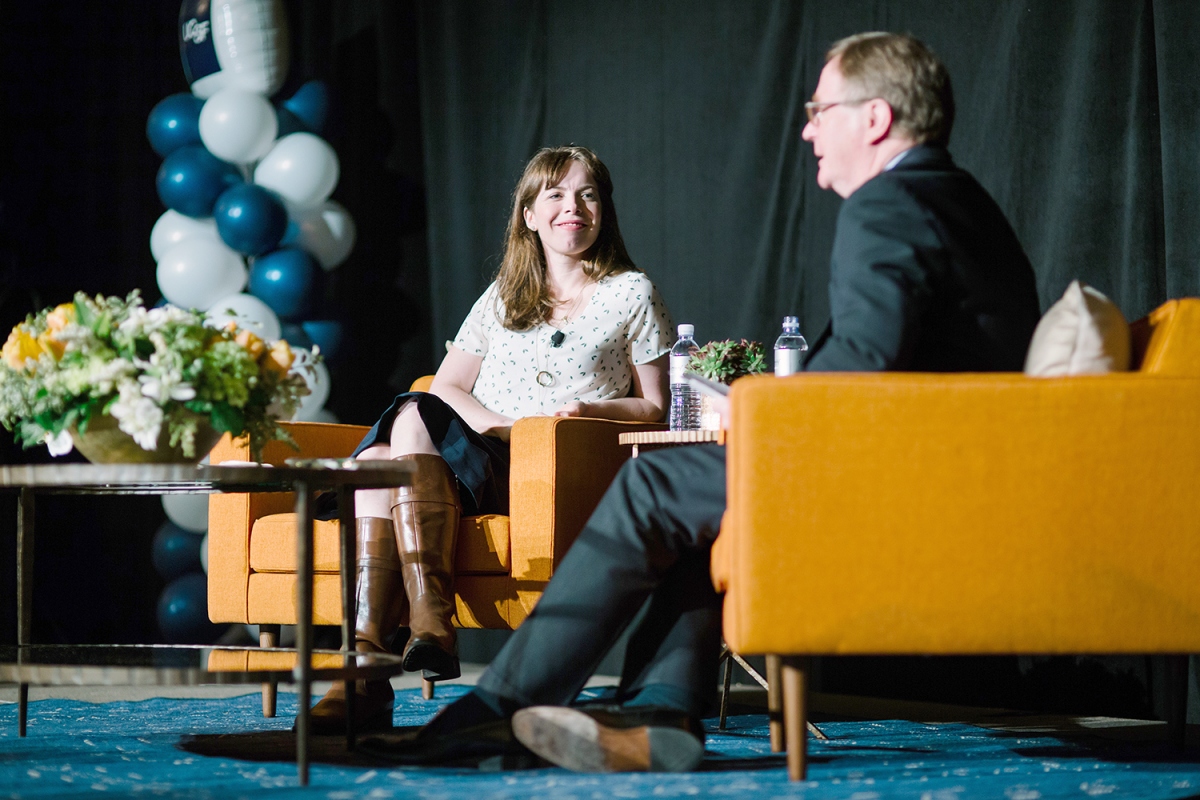 On Saturday morning, Chancellor Sam Hawgood, MBBS, hosted a breakfast event, during which he held a talk with Lucy Kalanithi, a UCSF resident alum and the wife of late surgeon Paul Kalanithi, author of the book “When Breath Becomes Air.” The memoir is about Paul Kalanithi’s life and his battle with stage IV lung cancer.