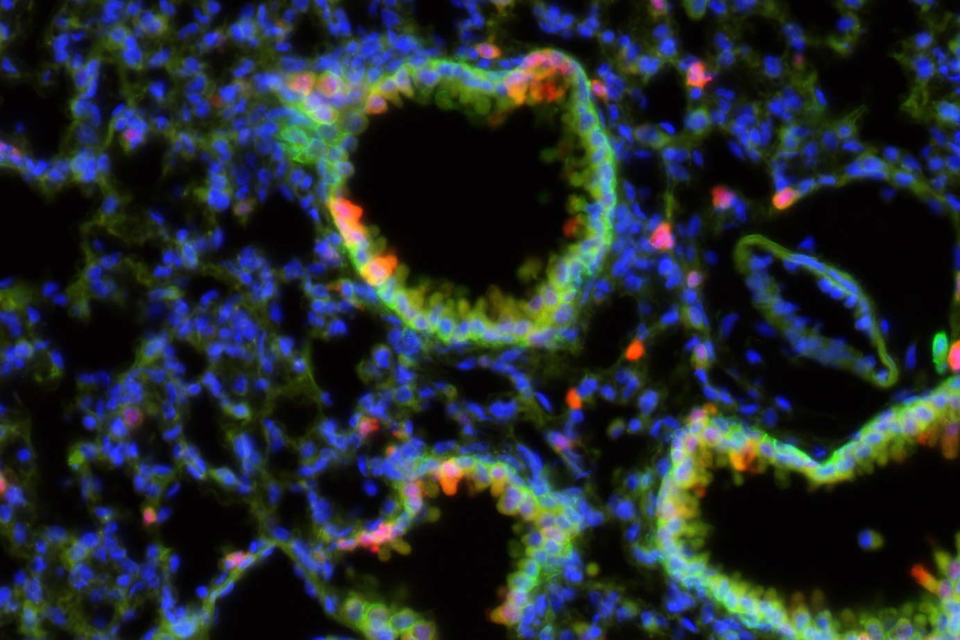 In the new study, which was spearheaded by postdoctoral researcher Steven Van Dyken, PhD, researchers showed that specialized cells lining the airways of mice produce a chitinase enzyme called AMCase, which appears to play a key role in preventing chitin buildup in the mouse lung. In mice genetically modified to lack this enzyme, chitin spontaneously built up in the airways and triggered a chronic inflammatory immune response, as well as setting off cellular stress pathways that have previously been linked to lung disease in humans.