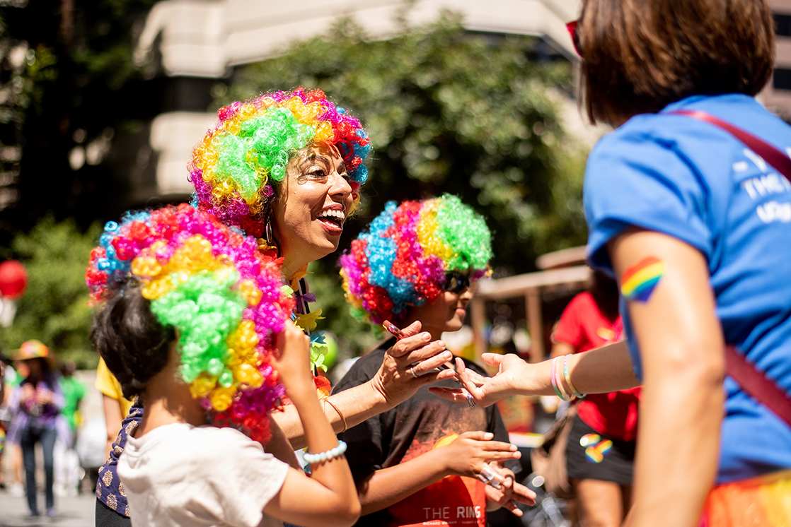 Kiara Lee (center) and her partner Evolve Benton (left), MA, MFA, assistant director of UCSF's LGBT Resource Center & Multicultural Resource Center, celebrate at the San Francisco LGBT Pride Parade. Photo by Noah Berger
