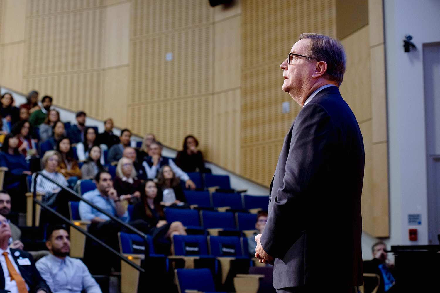 Chancellor Sam Hawgood speaks about the $500 million commitment from the Helen Diller Foundation that will support a new hospital at Parnassus Heights. Photo by Susan Merrell“While this success underscores the scale of bold ideas that are inspiring our donors, it also tells a story about our community,” he said. “More and more faculty members have been approaching me – not as individuals with their own needs, but rather as teams with a well-thought-out collaborative vision about how they plan to work together to tackle even larger, even more complex problems.”