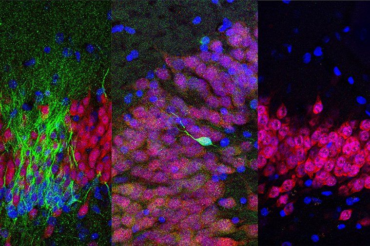 NEW NEURON DEBATE: A finding that new neurons may not generate in the human hippocampus in adulthood added to the decades-long scientific debate about neurogenesis. The study, published in March, found that humans may not produce new neurons throughout life like other species of animals like songbirds and rodents. Images by Arturo Alvarez-Buylla lab