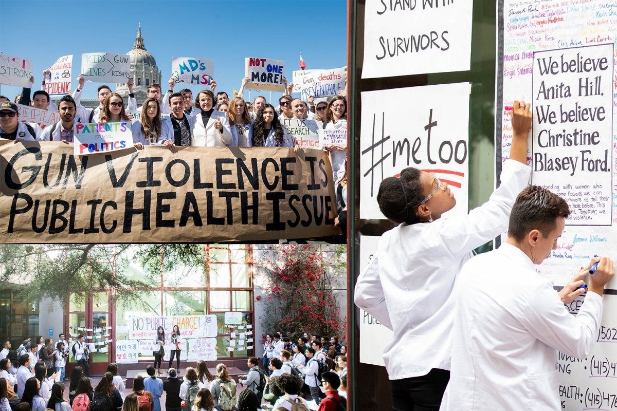 ADVOCATING FOR HEALTH: Health-related issues were major issues of public debate in 2018, and the UCSF community took a stand for our mission and values: Defending our DACA students. Supporting sexual violence survivors. Speaking out on gun violence. Rallying against changes to immigration rules impacting health coverage.