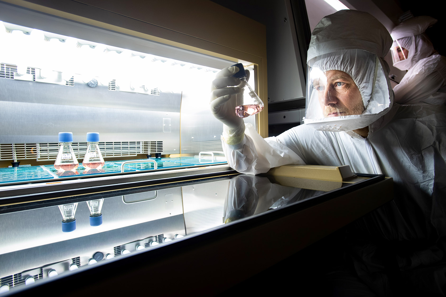 Studying a fungus that could potentially be deadly means the researchers take no chances when handling it. Sil’s team at UCSF works with the fungus in a new, state-of-the-art Biosafety Level 3 (BSL-3) laboratory where the air is filtered completely about once a minute and every piece of equipment, even the Sharpies used to label test tubes, is sprayed down with bleach. Researchers must wear full-body protective suits with an attached air-purifying respirator, booties and two layers of gloves. No one works in the lab alone.