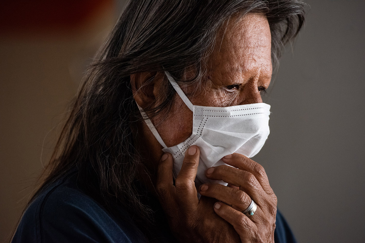 In solidarity with Navajo Nation colleagues, UCSF Health workers joined forces with local frontline medical teams to combat COVID-19 in Navajo Nation. Brenda Beyal tested negative for COVID-19 but was exposed to the virus. She was provided shelter at Howard Johnson Hotel in Gallup, Ariz. to keep the rest of her family safe until she was cleared. She received daily medical checks until it was safe to return to her home on the reservation, where she was caring for a sick relative. Photo by Barbara Ries