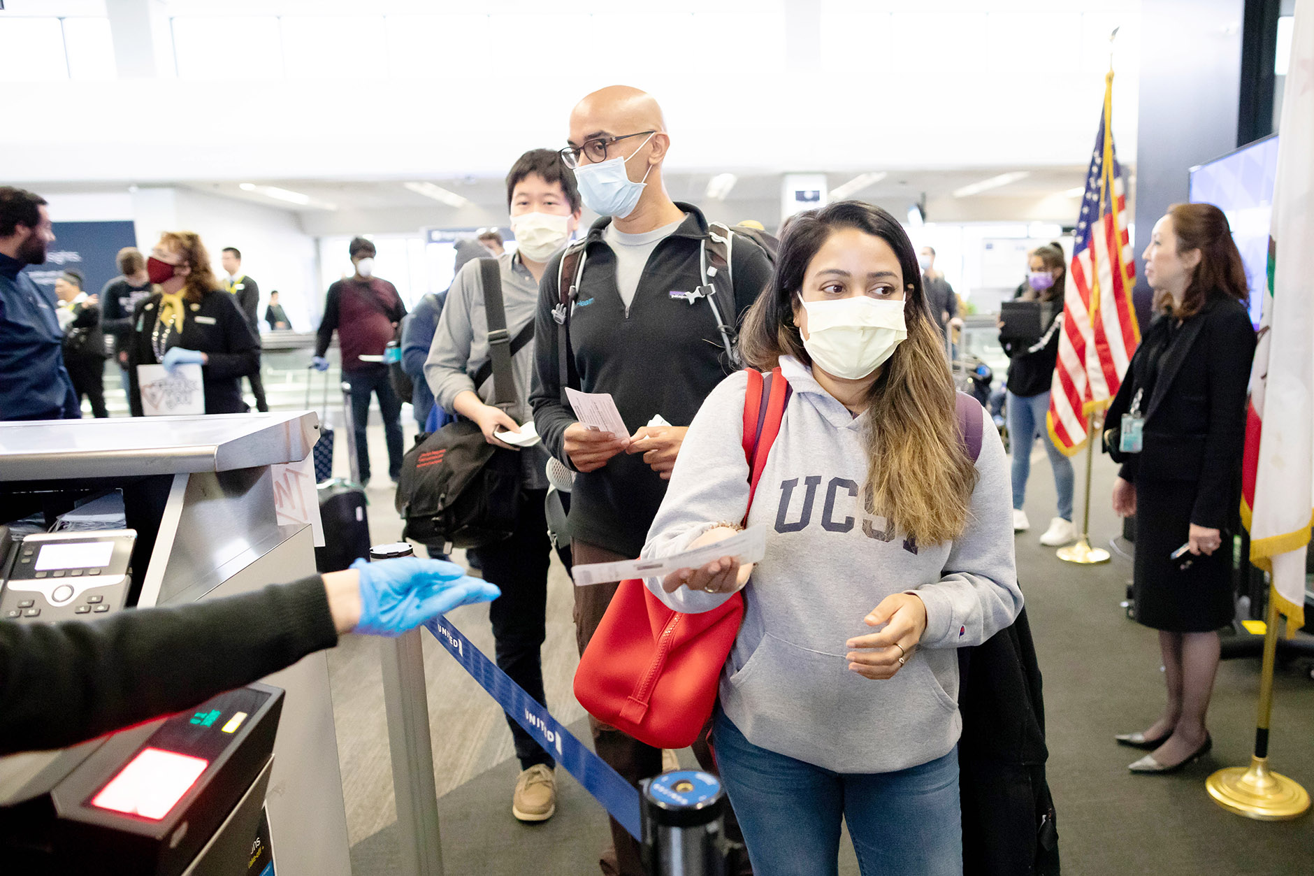 Sneha Daya (front), MD, Sanjay Reddy (center), MD, and Melvin La (background left), MD, were among the 20 UCSF Health workers who flew to New York on April 11 to volunteer in the NewYork-Presbyterian hospital system, which has been hit hard during the COVID-19 pandemic. Photo by Susan Merrell