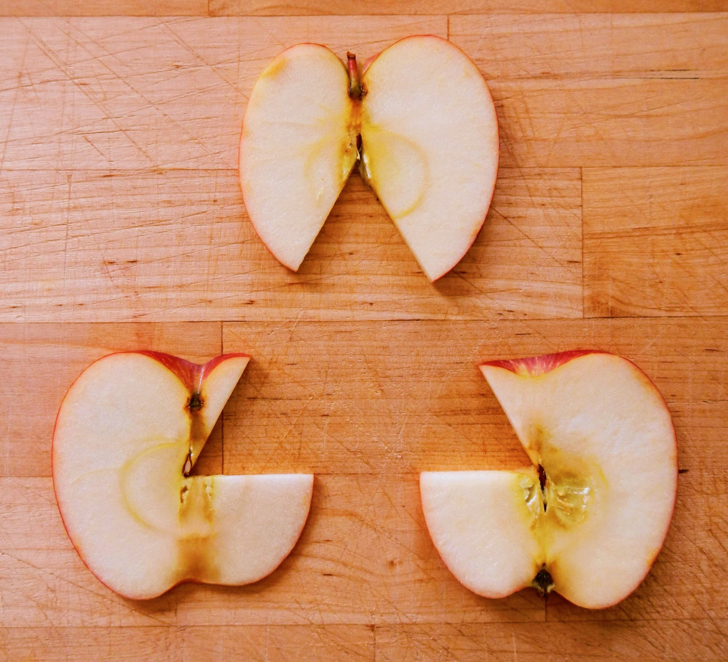 The brain fills in the missing triangle suggested by these apple slices, illustrating how strongly the visual system is primed to see what's expected.