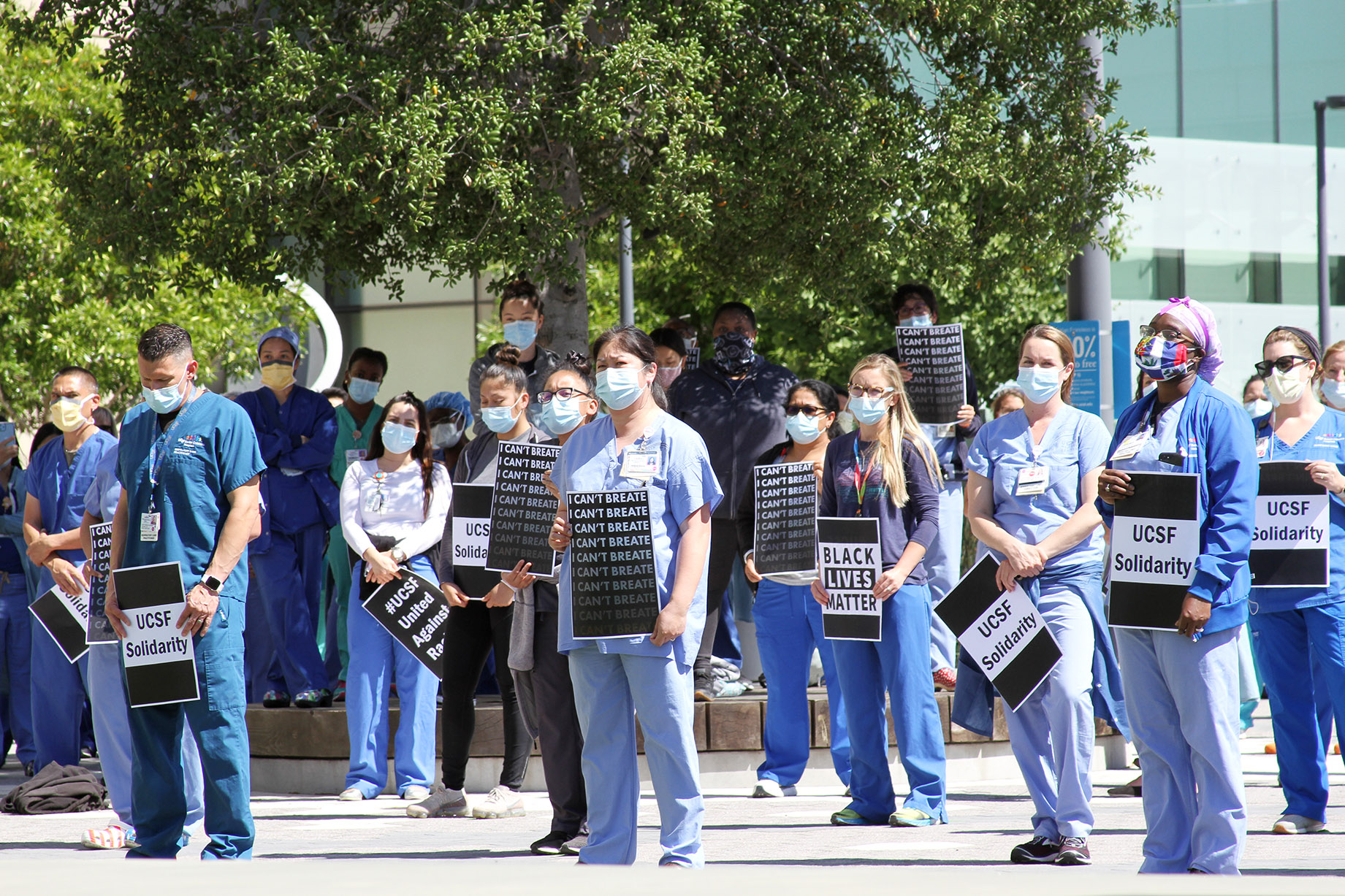 Members of the UC San Francisco community have united in calls for racial justice in town halls, organized and joined peaceful protests on and off campus, and knelt in solidarity with black Americans following the police killing of George Floyd in Minneapolis on May 25.