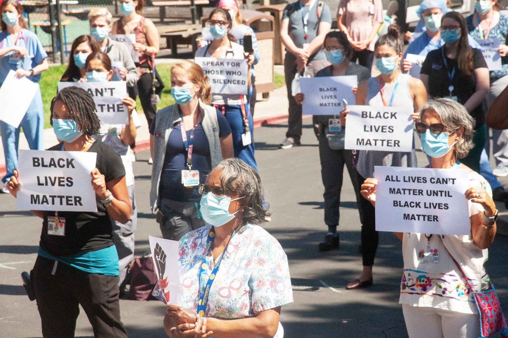 UCSF Fresno Department of Pediatrics clinicians and staff joined a rally on June 5 in solidarity with protestors calling to address systemic racism. Photo by Christian Faulkenberry-Miranda