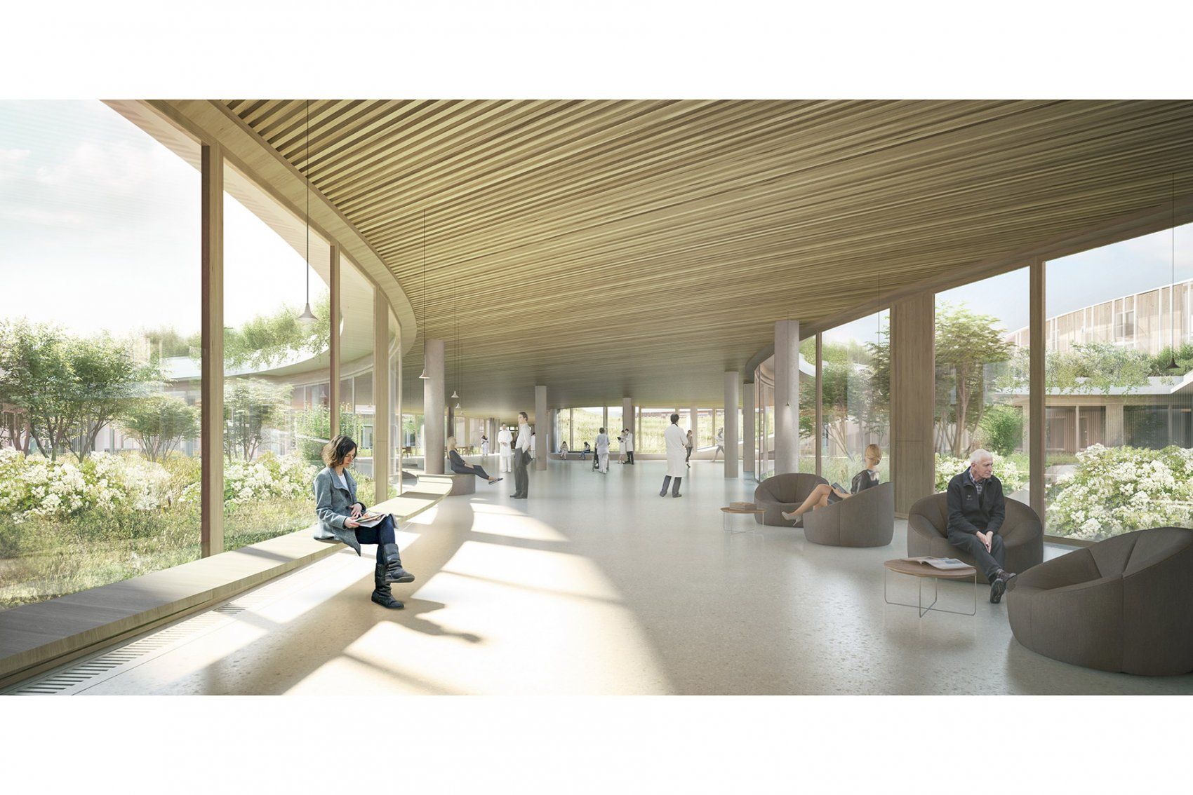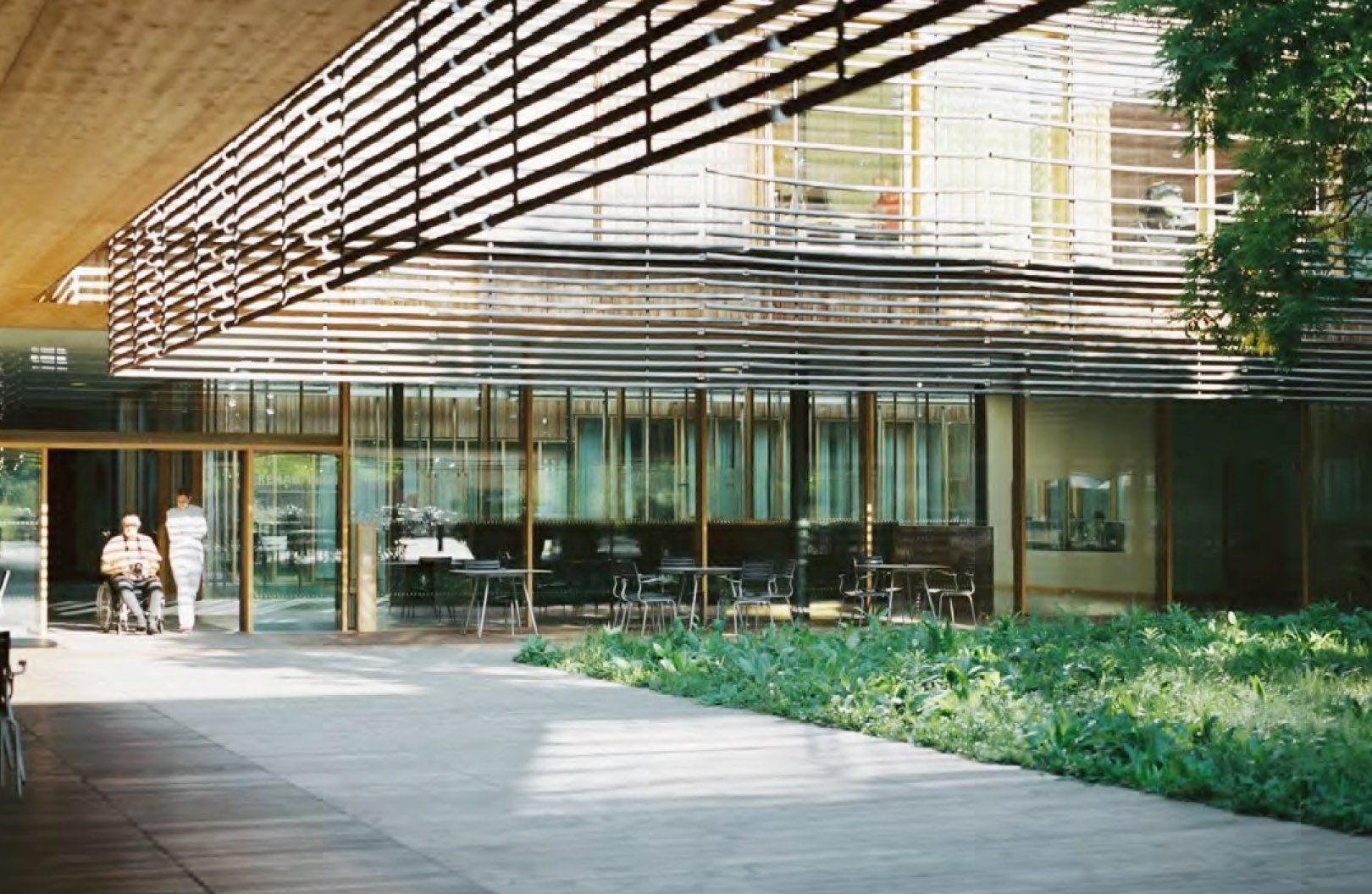 At the REHAB Basel, various inner courtyards provide orientation after people enter through the main lobby. Photo by Katalin Deér | Download a high-resolution version of this image