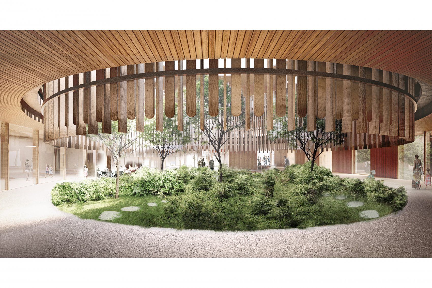 The University Children’s Hospital in Zurich has courtyards throughout for daylight and fresh air. The large entry court provides direct access to the restaurant and therapy services. Image courtesy of Herzog & de Meuron | Download a high-resolution version of this image