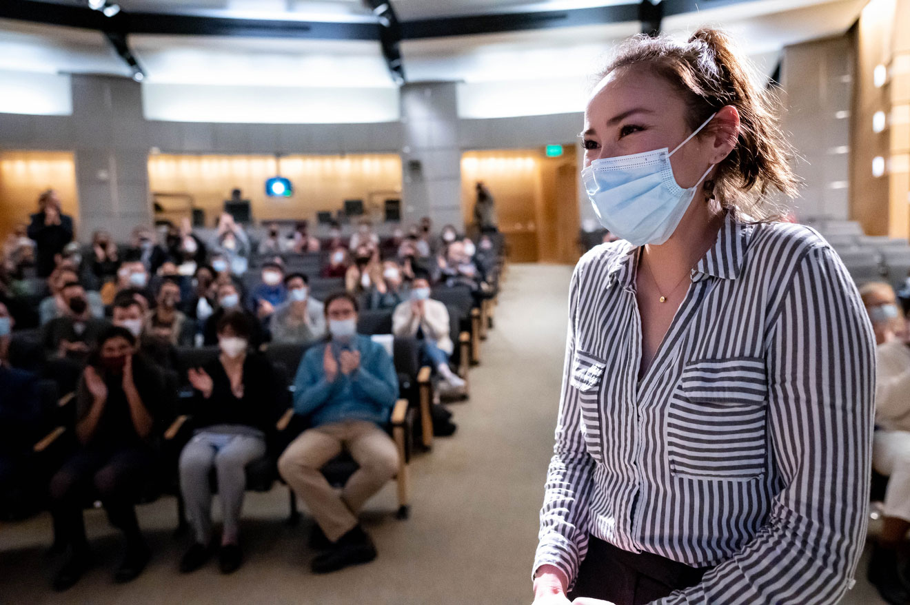She was among nine finalists in the sixth annual UCSF Grad Slam, held March 31 – after a two-year hiatus due to the pandemic – competing to inform and entertain with three-minute talks based on their own research. Their talks reflected the broad range of science research conducted at UCSF, from designing culturally competent care for COVID-19, to fighting bacteria with phages, to understanding the misfolded proteins that lead to dementia.
