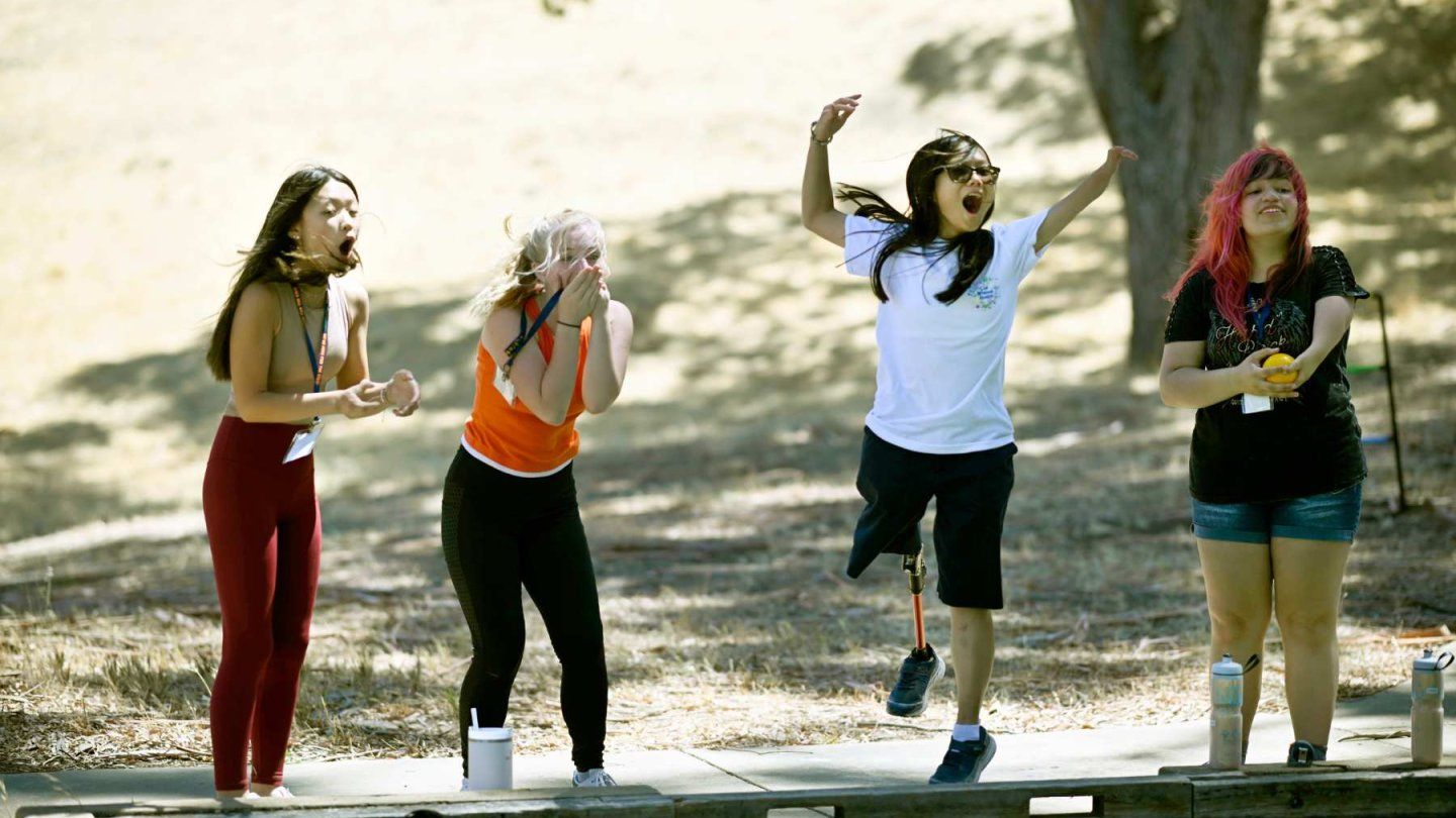 Camp Winning Hands is in the hills near Livermore, California. From the camp’s dining hall, oak woodlands stretch out below before giving way to vineyards. Mount Diablo looms in the distance.