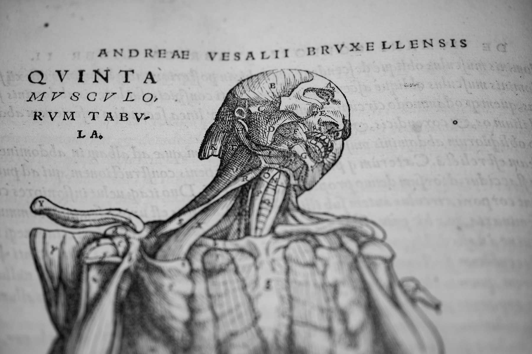 “De Humani Corporis Fabrica Libri Septem (On the Fabric of the Human Body in Seven Books)” by Andreas Vesalius, published in 1543.