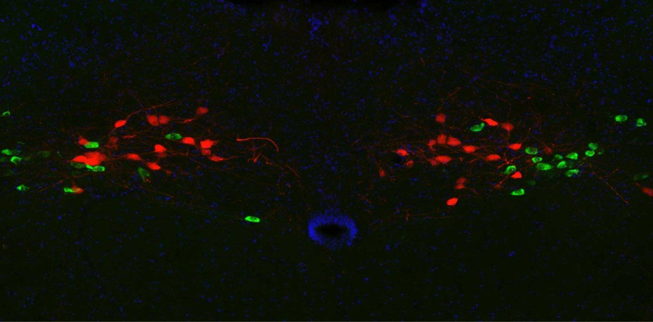 The team found that when they put food directly into the mouse’s stomach, brain cells called PRLH (for prolactin-releasing hormone) were activated by nutrient signals sent from the GI tract, in line with traditional thinking and the results of prior studies.