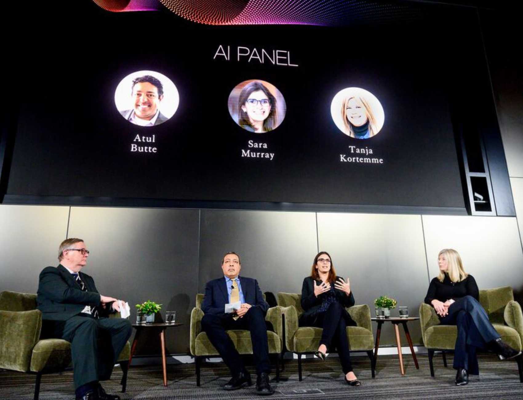 Murray joined Atul Butte, MD, PhD, Priscilla Chan and Mark Zuckerberg Distinguished Professor, Pediatrics, Bioengineering and Therapeutic Sciences, and Epidemiology and Biostatistics at UCSF, and Tanja Kortemme, PhD, a professor of Bioengineering and Therapeutic Sciences at UCSF, to discuss UCSF’s important role in thoughtful AI use during the first-ever panel convened in Hawgood’s State of the University address.