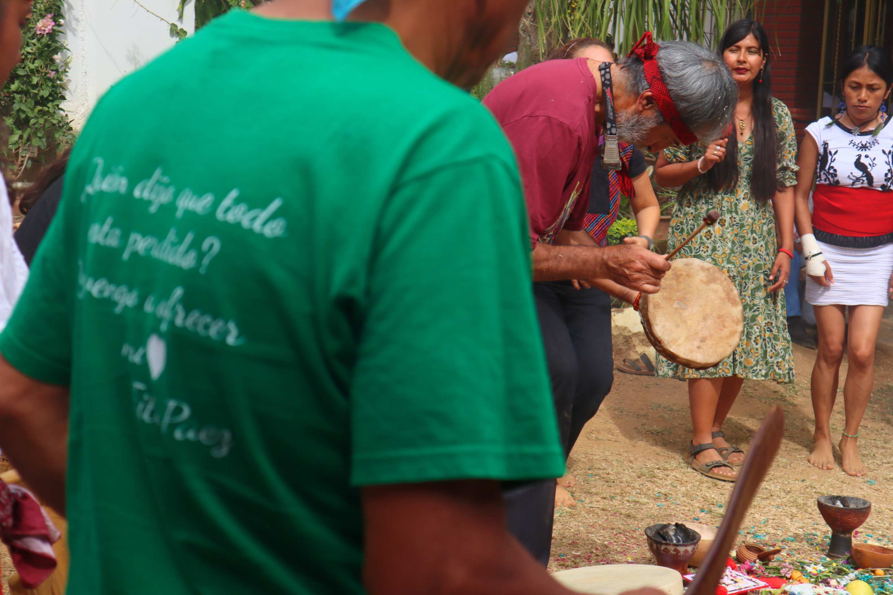 Pérez-Aguilar, UCSF’s 2023-2024 student Fulbright winner, participates in a “danza ancestral,” a traditional offering or prayer using movement and the sound of drums.