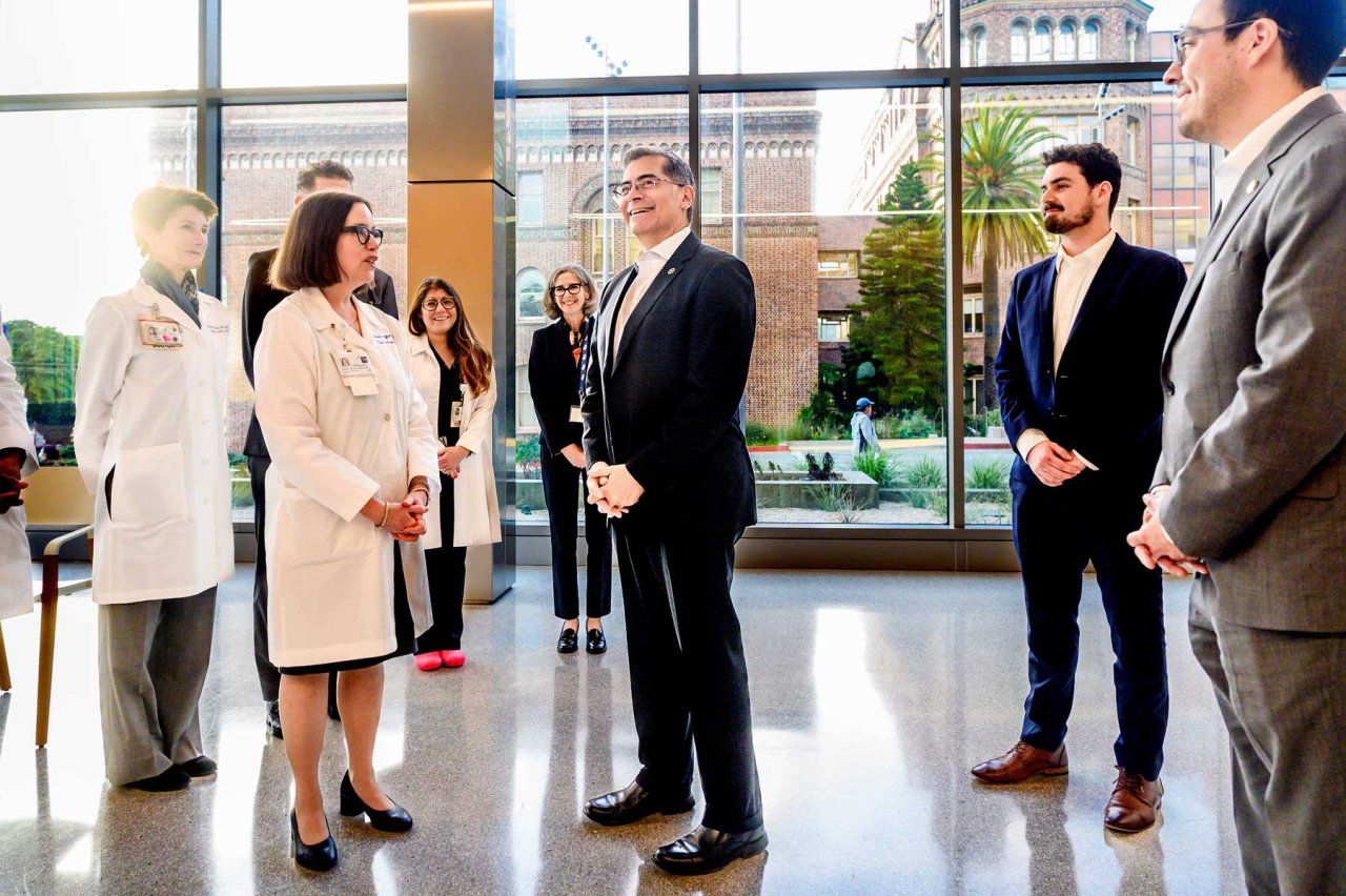 U.S. Health and Human Services Secretary Xavier Becerra paid a visit to UC San Francisco researchers, educators and clinical leaders on Monday to laud them for their leadership in reproductive health, as the Biden Administration seeks to preserve access to abortion care in post-Roe America.