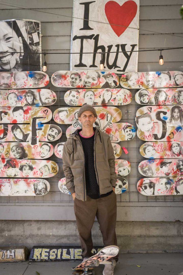 At first, his symptoms were mild enough that he could continue his work with the San Francisco Skate Club, a beloved neighborhood clubhouse he founded in 2007 with his wife Thuy Nguyen, a former teacher. Operating out of a storefront in San Francisco’s Western Addition, their door was open to any kid who wanted to learn how to skate, needed help with homework or just needed some groceries to take home. They offered skateboard classes and camps, hired some of their graduates, and served about 100 San Francisco kids a year.