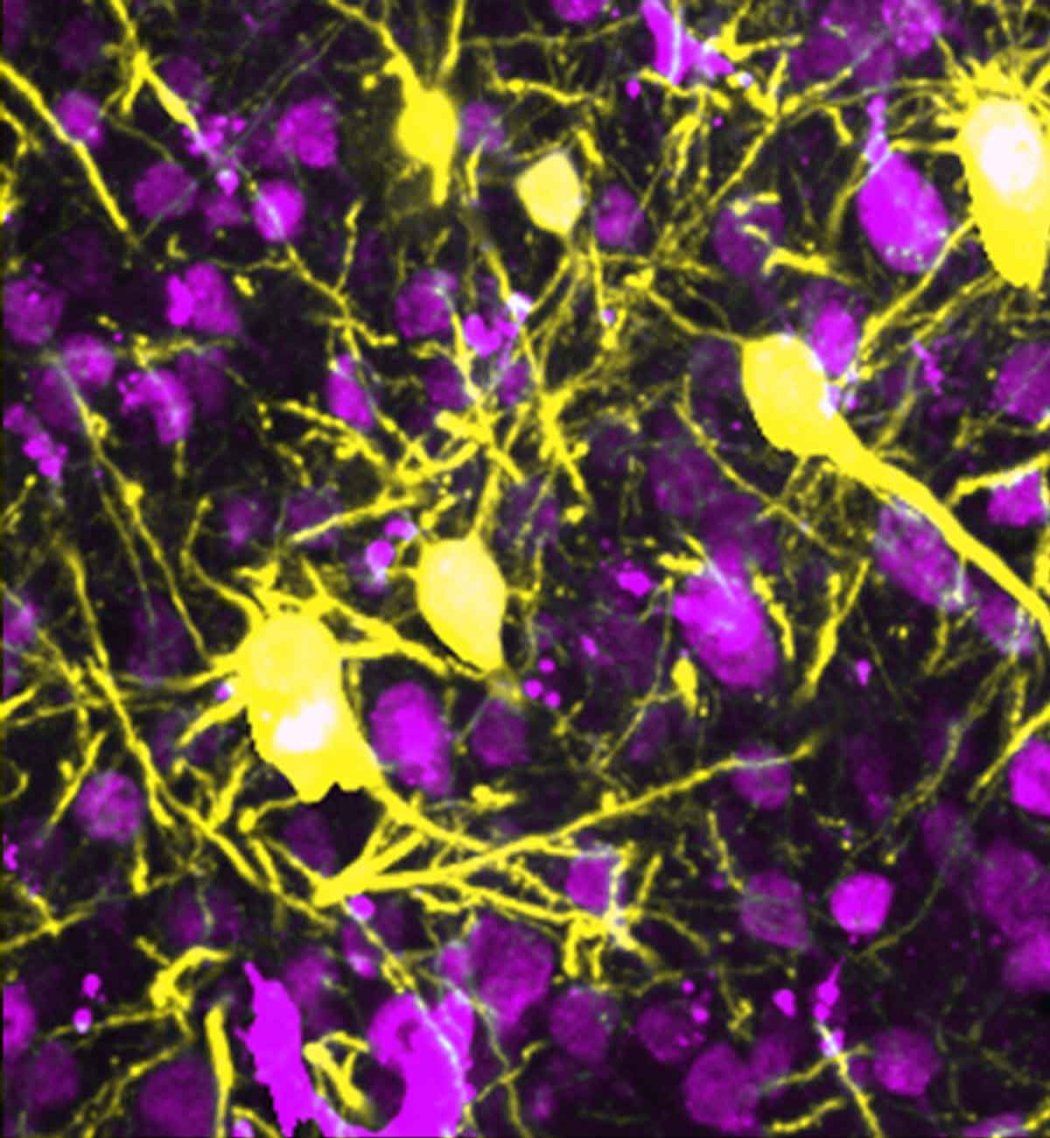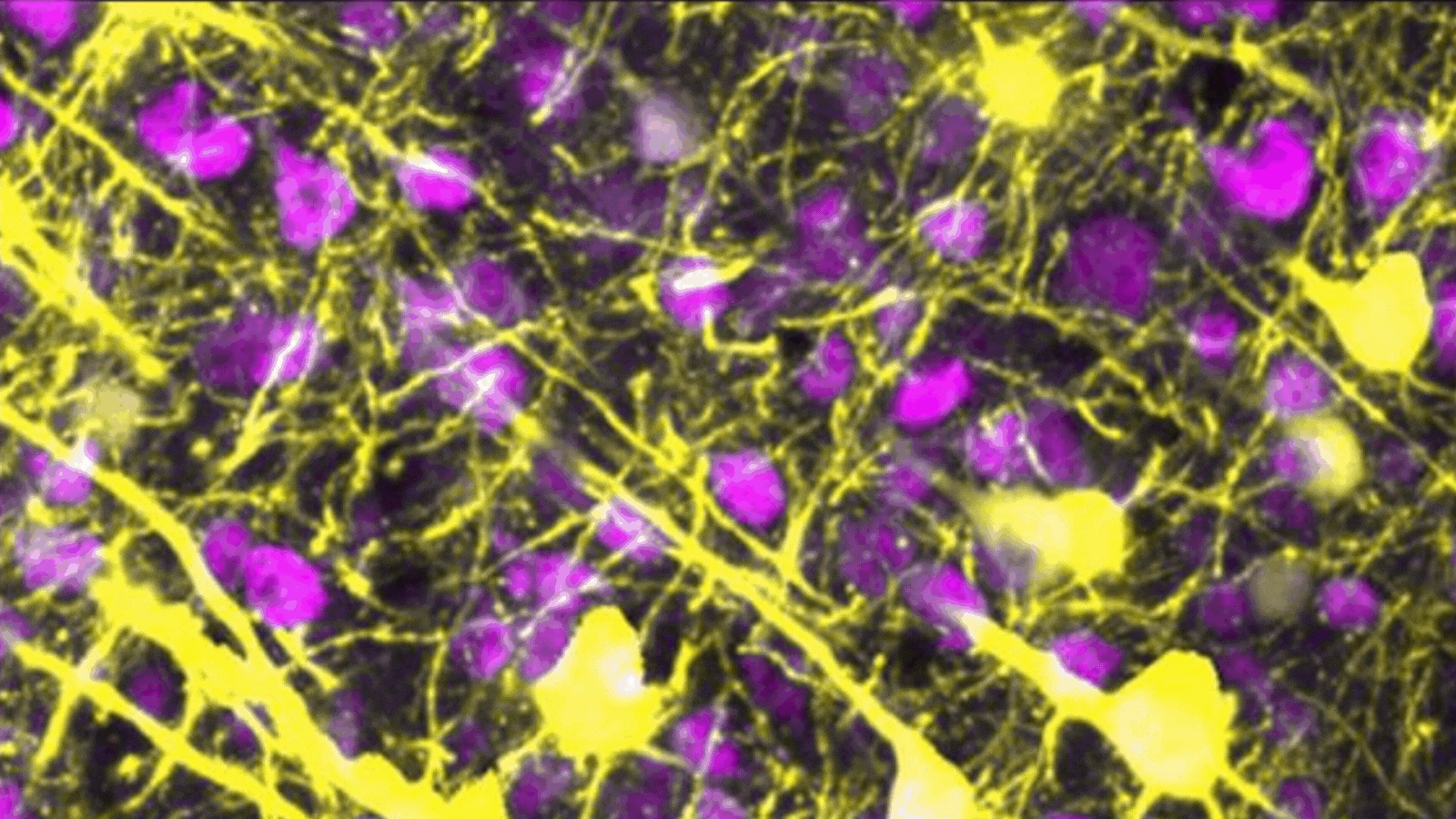 The brain’s neurons (yellow) connect with one another using a vast network of neural wires, called neurites.