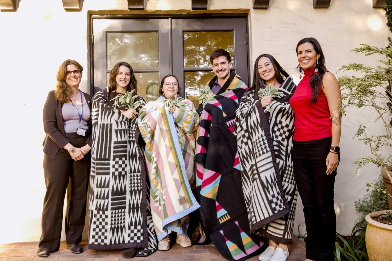 Lakatos and Bowles joined Brooke Warren, MD, and Jemzi Ortiz, MS – all four Native American students from UCSF’s professional schools – at a traditional blanket ceremony celebrating their graduations this month.