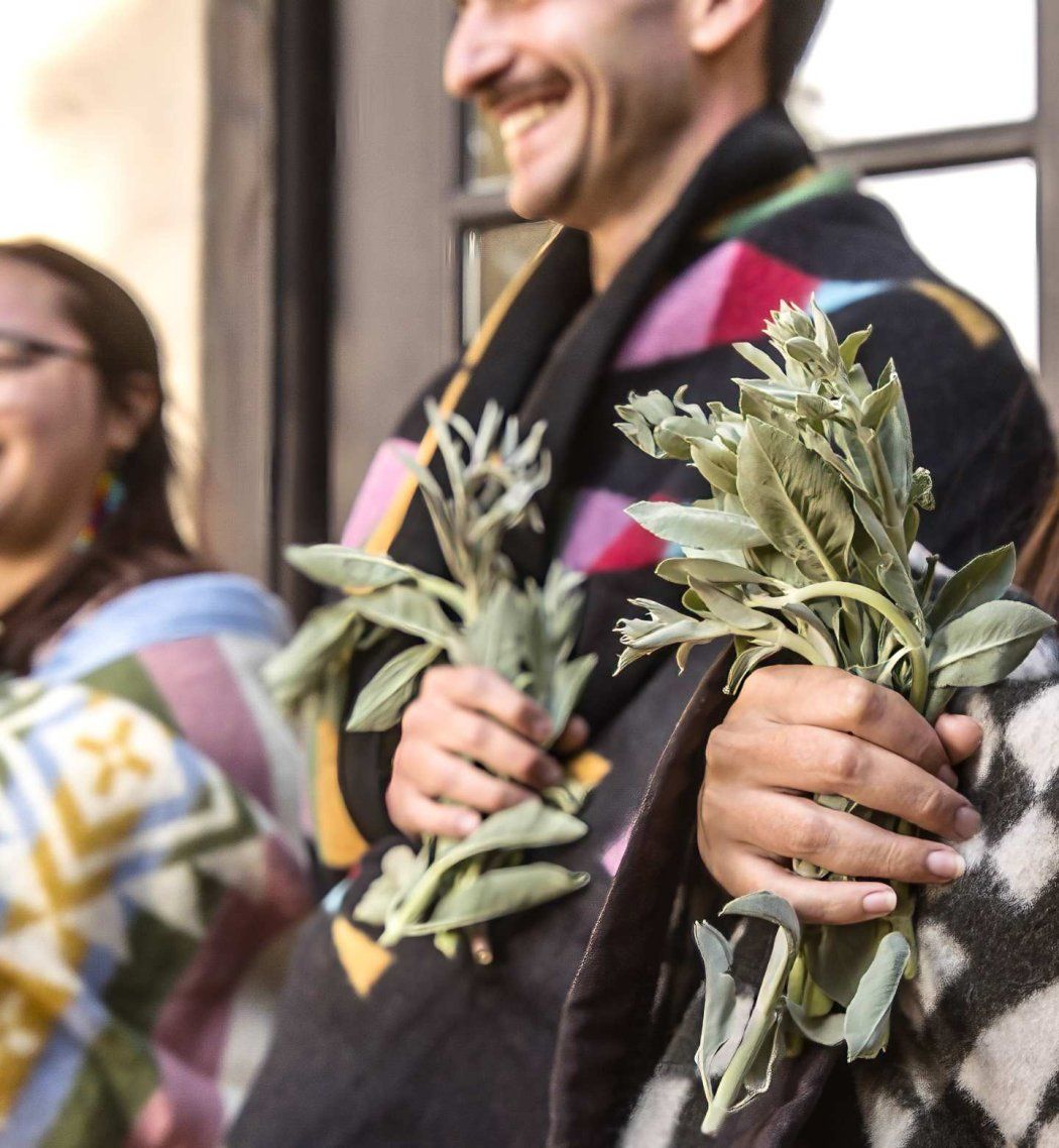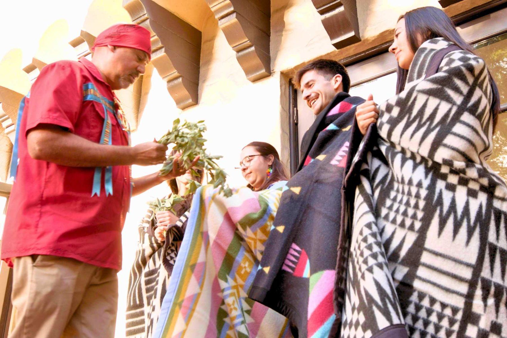 Roberto Vargas, MPH, distributes offerings of leaves from white sage flowers. Photo by Brian Feulner