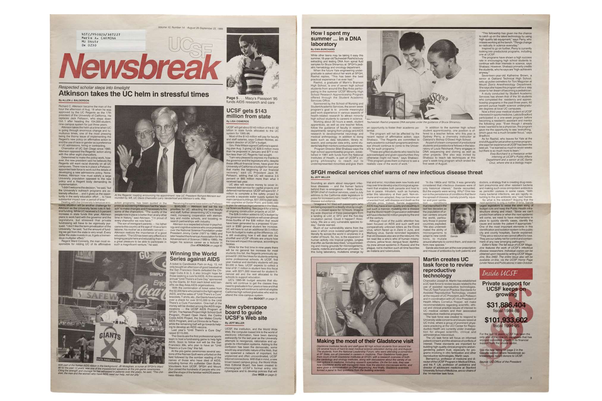 “It told the story of where UCSF was at that particular moment in time,” she said. “When we’d have stories like the development of Mission Bay, a new chancellor or a Nobel Prize win, Newsbreak was the primary way that UCSF communicated what was happening to faculty, staff and learners.”