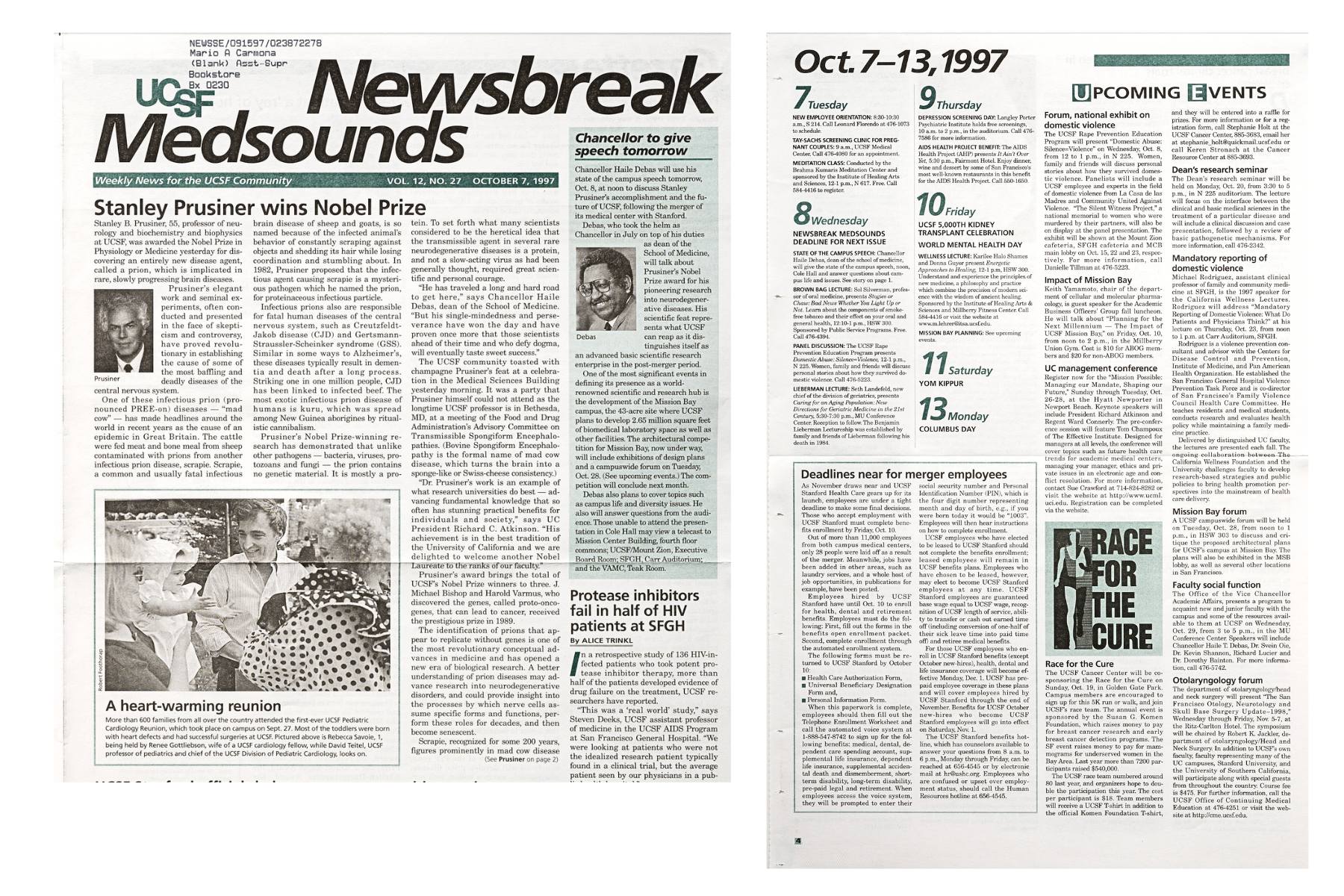 The tabloid-sized newspaper was delivered to UCSF employees’ mailboxes – yes, physical mailboxes – once every other week beginning in August 1986 until the publication was ended in the mid-2000s. The paper was oddly split in two – Newsbreak for campus employees and Medsounds for medical center employees. Although the paper was divided, its purpose was the same – informing the UCSF community about the news, events and initiatives happening on campus.