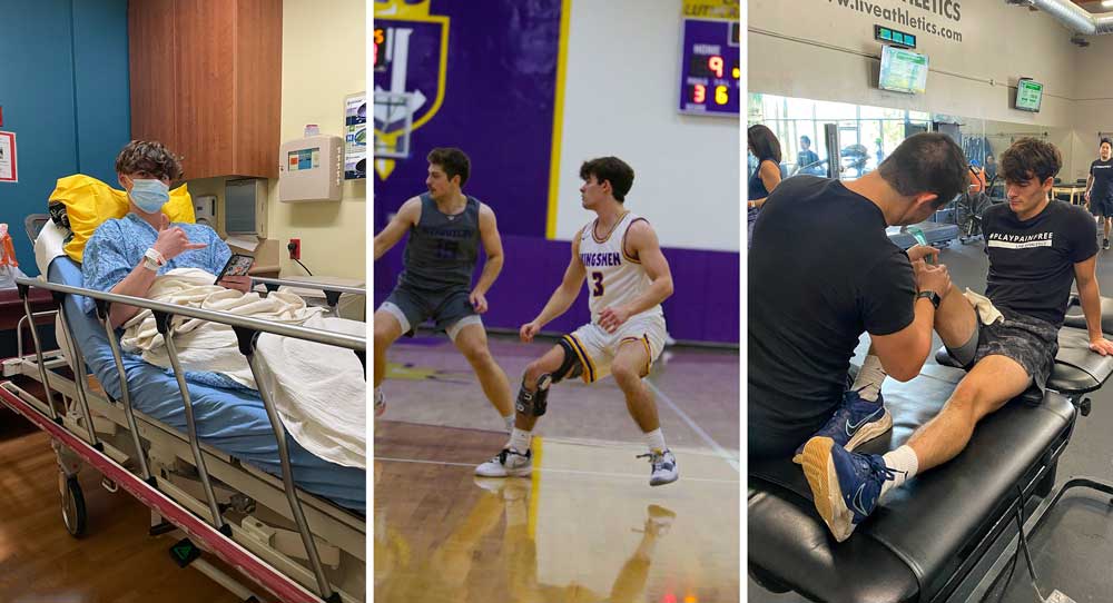 A year later, as a college freshman, Joseph was a part of the California Lutheran University basketball and track-and-field teams, the Kingsmen, in Southern California. He’d been cleared for post-surgery competitive sports by his South Bay surgeon, had completed six months of physical therapy and wore a knee brace as recommended whenever active. He was playing basketball again, when he landed awkwardly after a shot and heard the familiar pop. This time the pain was excruciating. He’d re-torn his partially healed ACL.