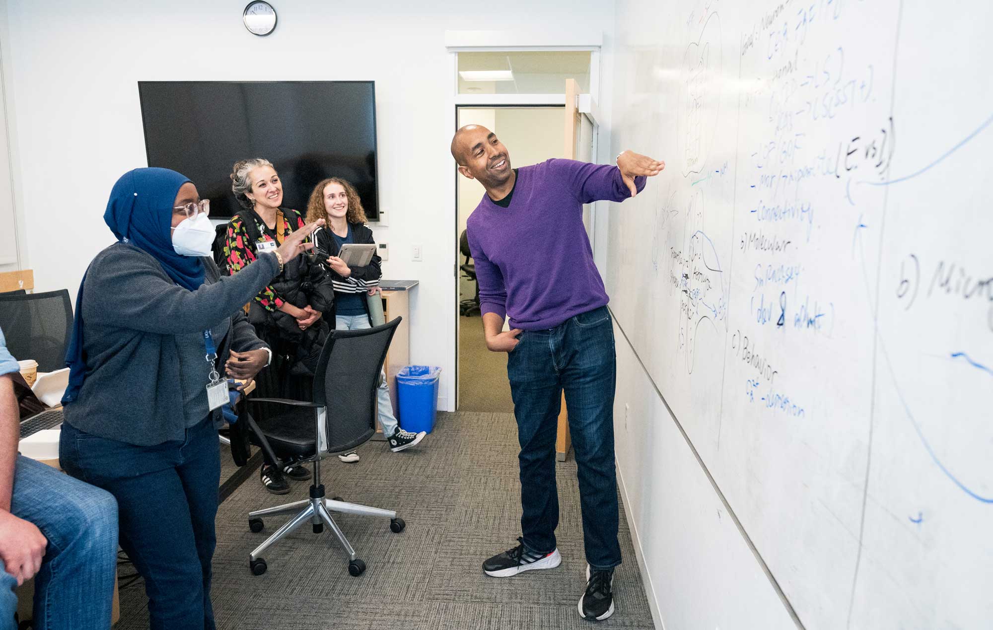 “I think it’s still very easy for me to conceive of what it’s like to come into a lab space and feel like you don’t know how to do anything,” he says. “Mentorship and teaching are part of the culture of my lab. It’s okay to not know something and to feel comfort in that because being at the edge of your knowledge is actually what this career is all about.”