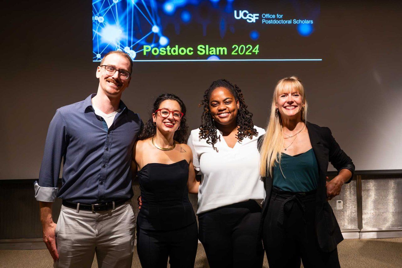 This year, UCSF Postdoc Slam talks covered cutting-edge research aimed at solving problems such as chronic pain, poor maternal health care for Black pregnant people and food insecurity. Presentations were judged on clarity and the ability to convey their work and spark curiosity.